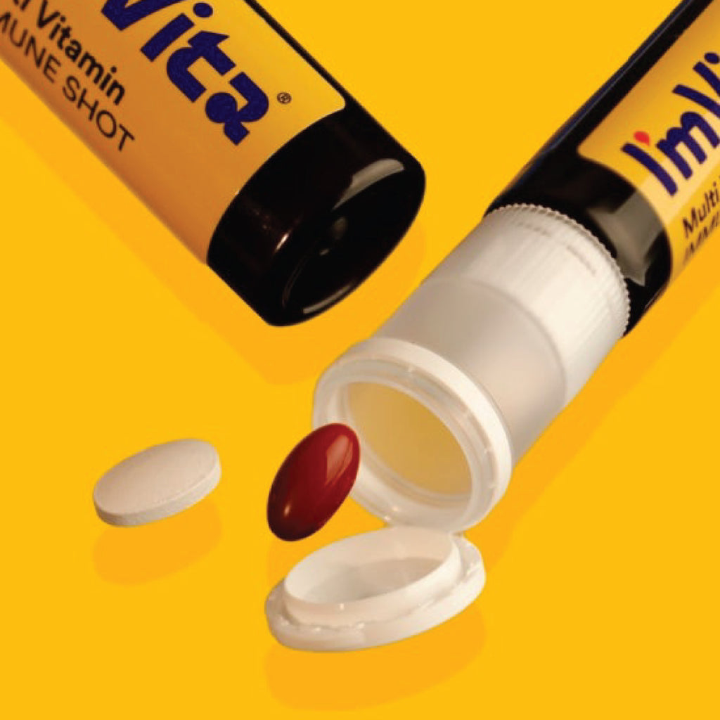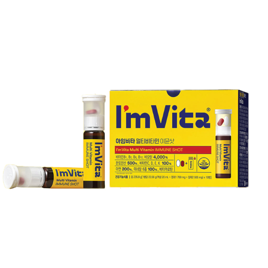 The I'M VITA Multi Vitamin Immune Shot is an all-in-one multivitamin supplement that comes in a single bottle containing liquid, a capsule, and tablets. It is designed to replenish vitamins and minerals that may be insufficient in a regular diet.