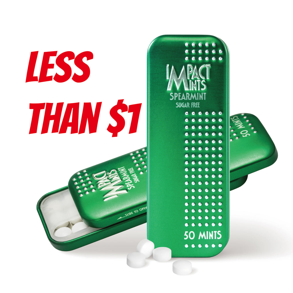 Pop open a tin of minty goodness with Impact Slim Slide Spearmint (12 tins)! These convenient, sugar-free mints deliver a refreshing wave of spearmint flavor that will leave your breath feeling clean and cool.